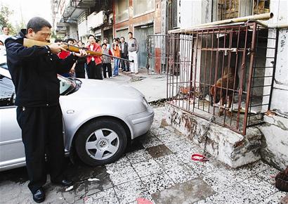 12日下午,武漢硚口區(qū)崇仁路一理發(fā)店老板圈養(yǎng)的一條藏獒,逃出鐵籠咬傷3人。因擔(dān)心該藏獒再次逃出傷人,民警開槍將其擊斃。
