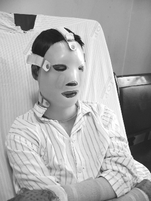 半年前,李剛在工作時,面部被乙炔氣體大面積燒傷,雙手也殘疾了。性格開朗的他變得自閉起來。目前,李剛正在東南大學(xué)附屬中大醫(yī)院康復(fù)科,戴著一種特殊的面具進行壓疤治療,現(xiàn)在面部疤痕少了很多,也漸漸走出了心理陰影。而采用這種特殊方法對燒傷患者進行治療,在南京是第一例。