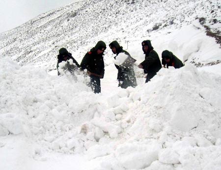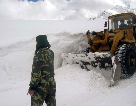 受持續(xù)強(qiáng)降雪和雪崩影響,川藏公路西藏境內(nèi)東達(dá)山至牛踏溝部分路段交通中斷。擔(dān)負(fù)川藏公路竹東段養(yǎng)護(hù)保通任務(wù)的武警交通部隊緊急啟動搶險預(yù)案,出動機(jī)車、兵力趕赴受災(zāi)現(xiàn)場全力搶通道路。 新華社記者 葉輝 攝