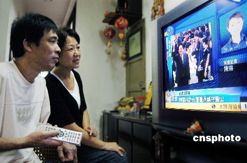 11月3日,僑鄉(xiāng)泉州市民在電視機前收看陳云林會長抵達(dá)臺灣桃園機場的實況轉(zhuǎn)播。今日,海峽兩岸關(guān)系協(xié)會會長陳云林率海協(xié)會協(xié)商代表團,展開在臺灣的歷史性訪問行程。中新社發(fā) 傅丹丹 攝