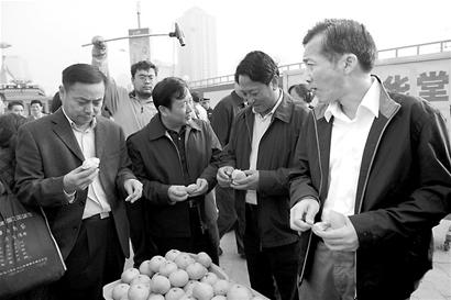 11月2日上午,成都大型賣場紛紛開門營業(yè)時,由省農(nóng)業(yè)廳等單位共同組織的“萬人免費(fèi)品嘗柑橘活動”也正式在各家賣場啟動。在春熙路一大型賣場內(nèi),當(dāng)市民們爭相走向免費(fèi)品嘗點(diǎn)時,農(nóng)業(yè)部副部長陳曉華、副省長張作哈、省農(nóng)業(yè)廳廳長任永昌等領(lǐng)導(dǎo)也走到了柑橘品嘗點(diǎn)前,細(xì)細(xì)品嘗起這些剛從果農(nóng)柑橘園子中摘下的新鮮柑橘。在他們的帶領(lǐng)下,原本購物的市民也紛紛停下腳步,走到了品嘗點(diǎn)品嘗柑橘!澳壳笆袌錾系拈僮,包括今天免費(fèi)品嘗的20噸橘子都是經(jīng)過了相關(guān)部門檢驗(yàn)的,絕對沒有問題,而且品質(zhì)很好!笔∞r(nóng)業(yè)廳廳長任永昌表示。