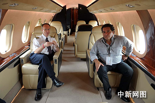 在第七屆中國國際航空航天博覽會上,“環(huán)球快車”、“豪客4000”等公務(wù)機(jī)成珠海航展亮點(diǎn),不少商家、媒體記者登機(jī)體驗(yàn)。作 者:陳文