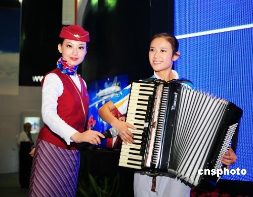 第七次參加珠海航展的南航,為本屆展會帶來了更多新鮮元素:美麗優(yōu)雅的“奧運空姐”,在南航展區(qū)一亮相就博得了滿堂喝彩。中新社發(fā) 邵富強 攝