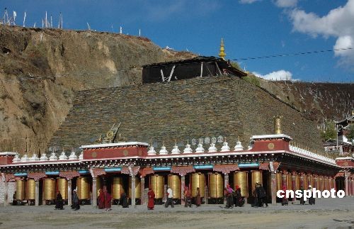 四川康定塔公鄉(xiāng)各日瑪林扎西寺的左側(cè)有一座“神山”,當(dāng)?shù)厝朔Q為“經(jīng)幡山”,中國農(nóng)歷每月十五,當(dāng)?shù)孛癖娮园l(fā)前往扎西寺朝拜神山進行祈禱。中新社發(fā) 肖龍聯(lián) 攝