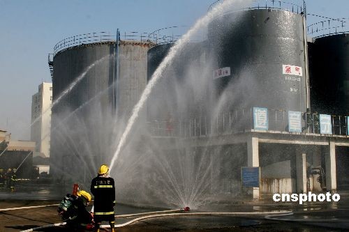 11月11日上午,山東濰坊市區(qū)藍(lán)天化工廠液氯罐突然爆炸,氯氣大量泄漏并向四周擴(kuò)散。濰坊市應(yīng)急辦迅速啟動《濰坊市危險化學(xué)品特大安全事故應(yīng)急援救預(yù)案》實(shí)施緊急救援。為貫徹上級關(guān)于大力推進(jìn)防空防災(zāi)在一體化建設(shè)、促進(jìn)城市建設(shè)與人防建設(shè)同步協(xié)調(diào)發(fā)展的指示精神,濰坊市人民政府、濰坊軍分區(qū)決定,結(jié)合當(dāng)?shù)亍皟煞酪惑w”特點(diǎn),組織這次演習(xí)。中新社發(fā) 王勇 攝