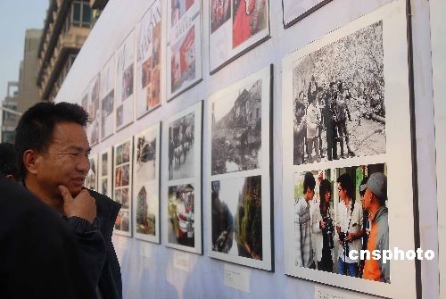 208年11月14日,時尚30年圖片展在杭州開幕,30多幅黑白老照片讓眾多市民回憶起小時候的生活場景,同時大學生也著各時代的時裝前來捧場。中新社發(fā) 引煒 攝