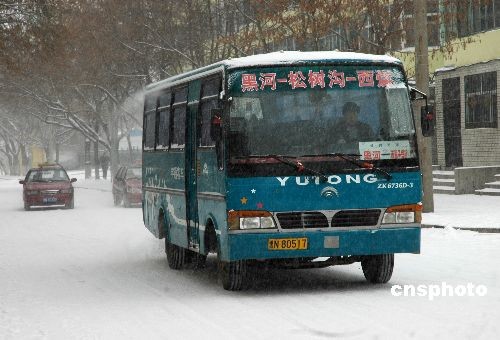 11月15日,受強冷空氣的影響,黑龍江省出現(xiàn)一次降雪和降溫,其中黑河、伊春、綏化北部有中到大雪,哈爾濱東北部、鶴崗有小到中雪,其它地區(qū)為小雪天氣。黑龍江省氣象臺繼續(xù)發(fā)布道路結(jié)冰黃色預(yù)警信號。中新社發(fā) 邱齊龍 攝