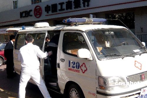 11月15日中午,北京一家工商銀行一位正在辦理個(gè)人業(yè)務(wù)的老人突然昏迷休克倒地,銀行工作人員立即呼叫120救護(hù)車前來進(jìn)行搶救。中新社發(fā) 錢興強(qiáng) 攝