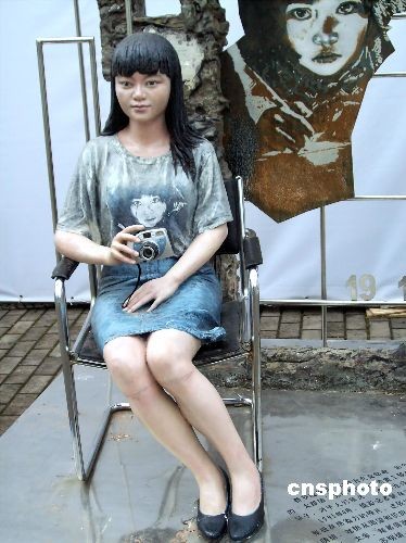 2008年11月26日,“中國(guó)姿態(tài)”首屆中國(guó)雕塑大展中展出雕塑作品《我的照片•我的夢(mèng)》。作品中的小女孩就是中國(guó)希望工程的形象代表“大眼睛女孩”蘇明娟。中新社發(fā) 井韋 攝