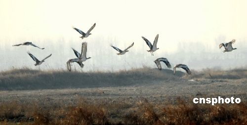 12月14日,120多只大鴇出現(xiàn)在河北滄州海興縣農(nóng)田中。大鴇屬國家一級重點(diǎn)保護(hù)動物,雖然分布很廣,但在世界范圍內(nèi)的種群數(shù)量都普遍處于下降趨勢。大鴇在我國的種群數(shù)量曾經(jīng)是相當(dāng)豐富的,但近年來數(shù)量已經(jīng)變得相當(dāng)稀少,估計(jì)目前總數(shù)僅有300—400只。據(jù)了解,這么大集群數(shù)量是近年來所罕見的。中新社發(fā) 王少華 攝