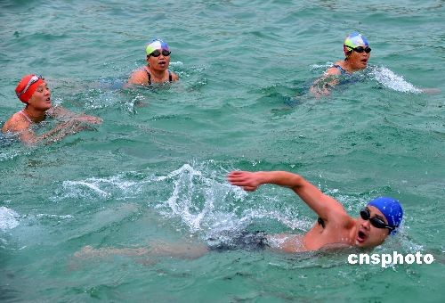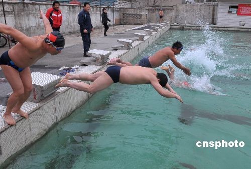 圖:冬泳愛好者不畏寒風(fēng)
