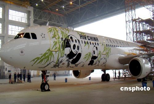 12月25日上午,以水墨畫風(fēng)格噴涂大熊貓母子竹林嬉戲圖案的第二架“秀美四川”號空客A三二一彩繪飛機在成都雙流機場向公眾亮相。據(jù)悉,該機將于本月二十七日正式投入航班運營,計劃首班執(zhí)飛成都—上海航班,今后將主要安排執(zhí)飛成都—臺北航線。中新社發(fā) 王萌 攝