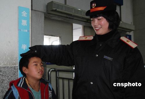 2008年12月25日,蘇州火車站更換了一批兒童票身高標(biāo)識牌。據(jù)了解,從12月21日起鐵道部決將乘坐火車時(shí)購買兒童半價(jià)票的參照身高標(biāo)準(zhǔn)調(diào)整為1.1米至1.5米。相比原來1.1米至1.4米的標(biāo)準(zhǔn),新標(biāo)高的上限高出了10厘米。中新社發(fā) 朱子寒 攝