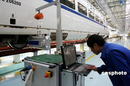 12月30日,工作人員在北京火車(chē)車(chē)輛段內(nèi)對(duì)動(dòng)車(chē)組列車(chē)進(jìn)行全面的檢修,以便迎接即將到來(lái)的春運(yùn)。2009年中國(guó)春運(yùn)期為1月11日至2月19日,共計(jì)40天,北京鐵路局從1月1日起提前10天進(jìn)入春運(yùn)。春運(yùn)期間,北京西站上下車(chē)旅客預(yù)計(jì)將首次超過(guò)1000萬(wàn)人次。中新社發(fā) 富田 攝