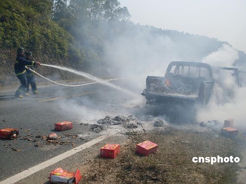 1月9日12點(diǎn)30分左右,廣西欽州市境內(nèi)一輛卡車突然起火,隨后引燃附近近千畝甘蔗林。欽州消防部門迅速趕到現(xiàn)場(chǎng)滅火,2個(gè)小時(shí)后大火被撲滅,事故無人員傷亡。中新社發(fā) 劉富強(qiáng) 攝