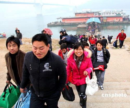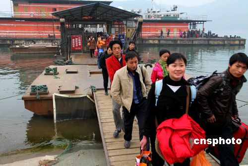 2月1日,47艘客船、高速客船出川,1.5萬多名出川農民工返城,三峽庫區(qū)迎來節(jié)后春運首次高峰,海事、公安、港口加大出川旅客進港秩序維護,沒有一艘客船出現(xiàn)超載。中新社發(fā) 望作信 攝