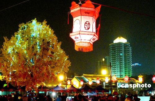 2月6日,“2009蘇州元宵燈會”在蘇州古運(yùn)河畔的古胥門廣場閃亮登場,現(xiàn)場舉行的賞花燈、猜燈謎等民俗表演活動(dòng),吸引了許多市民和中外游客。中新社發(fā) 王建中 攝