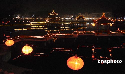 2月7日晚在山東省棗莊市山亭區(qū)太清湖公園內(nèi)拍攝的元宵燈海。連日來,山東省棗莊市山亭區(qū)太清湖公園內(nèi)張燈結彩,喜迎元宵佳節(jié)。夜幕下的湖中倒影璀璨繽紛,整個公園仿佛燈的海洋。中新社發(fā) 李宗憲 攝