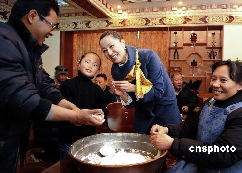 藏歷新年前夕,在中國國際航空公司擔(dān)任國際航線空姐職務(wù)的德慶央宗專程從北京帶著父母趕回拉薩,和親朋好友歡度藏歷新年。德慶央宗的父親曾供職于中國《民族畫報》,母親供職于中國藏學(xué)研究中心,他們一家已經(jīng)多年沒有回西藏過藏歷新年。中新社發(fā) 廖攀 攝