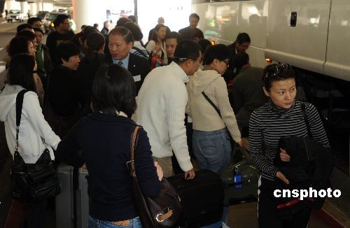當(dāng)?shù)貢r間二月二十四日中午,由北京某房地產(chǎn)網(wǎng)站組織的所謂“中國赴美購房團(tuán)”一行二十多人抵達(dá)洛杉磯機(jī)場,團(tuán)隊(duì)規(guī)模比此前該網(wǎng)站宣稱的四十人明顯縮水。根據(jù)行程安排,他們將用十天左右的時間“考察”洛杉磯、拉斯維加斯、舊金山、紐約和波士頓五個城市的住宅市場。據(jù)接待該團(tuán)隊(duì)的美國加州商業(yè)基金會人士稱,該團(tuán)隊(duì)將會兼顧看房與旅游觀光。中新社發(fā) 張煒 攝