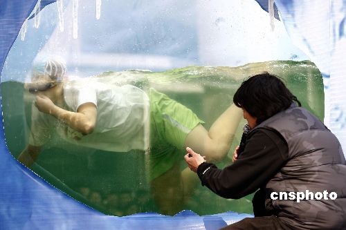 2月28日,“紅牛勇闖南北極”大型探險勇士招募活動開始在新春的北京舉行,應(yīng)募市民在活動中挑戰(zhàn)在冰水中憋氣。在北京站招募比賽中順利闖過三關(guān)、表現(xiàn)優(yōu)異者,將有機(jī)會前往北極極點(diǎn)探險。“紅牛勇闖南北極”大型探險勇士招募活動將在全中國海選出14位挑戰(zhàn)者,送往中國內(nèi)蒙古沙漠、瑞士阿爾卑斯冰川、挪威薩米人居住區(qū)等極地訓(xùn)練營展開集訓(xùn),最終會有3人獲得挑戰(zhàn)北極點(diǎn)的最后通行證。而南極探險選拔活動將在下半年進(jìn)行。中新社發(fā) 盛佳鵬 攝