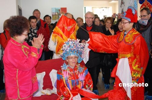 3月1日,江蘇鎮(zhèn)江市永安新城小區(qū)的喬樑迎娶比利時姑娘多娜。據(jù)了解,喬樑是在留學(xué)比利時期間與校友多娜相識、相戀、相愛走到了一起,兩人商議在中國舉行婚禮的想法得到雙方父母支持,多娜的20多位親友也從比利時隨行來中國參加了婚禮活動。中新社發(fā) 陳崗 攝