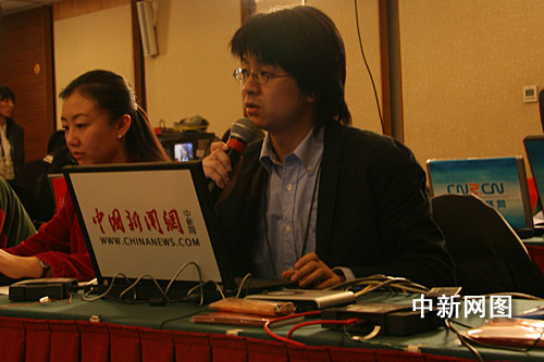 3月5日晚8時(shí),“兩會(huì)”新聞中心邀請了5位出席十一屆全國人大二次會(huì)議的代表,與網(wǎng)民在線交流如何應(yīng)對國際金融危機(jī)的挑戰(zhàn)。圖為中新網(wǎng)記者代表網(wǎng)友向5位代表提問。中新網(wǎng)記者 吳博 攝
