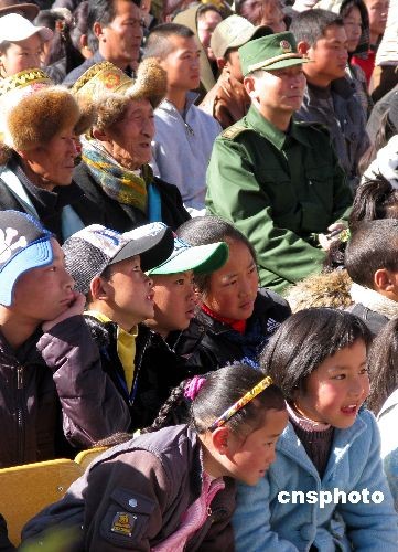 3月8日,西藏軍區(qū)文工團(tuán)到拉薩市吉崩崗社區(qū),為居民們帶來專場(chǎng)演出。中新社發(fā) 劉舒凌 攝