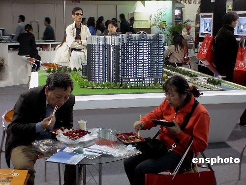 北京地產(chǎn)市場沉寂一冬迎來三月陽春,看房客們開始成群結(jié)隊熱鬧行動。有樓盤推銷商向可能出手買房者贈送中午盒飯,期望買賣做成。中新社發(fā) 賈國榮 攝