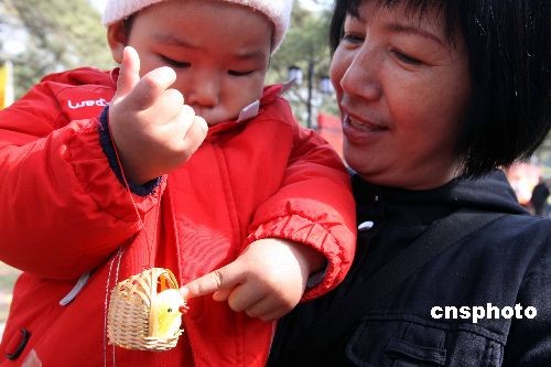 三月二十日,是中國二十四節(jié)氣中的春分。北京春分朝陽民俗文化藝術節(jié)閃亮登場,為中國這一第一批非物質(zhì)文化遺產(chǎn)的傳承提供了展示的天地。北京春分朝陽民俗文化藝術節(jié)于二零零七年開始首創(chuàng),直至今年已經(jīng)舉辦了三屆,由于內(nèi)容豐富多彩,為百姓喜聞樂見而深受歡迎。圖為北京春分朝陽民俗文化藝術節(jié)吸引市民。中新社發(fā) 任海霞 攝