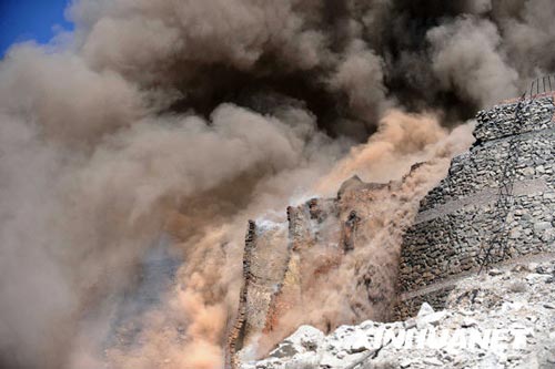 目前,救援工作仍在進行中。由于石灰窯窯口前的臺地面積很小,且有一條大裂縫,消防車一時難以駛?cè);消防人員用高壓水槍作業(yè)時,水一噴上去窯體即不斷塌方,救援難度較大。