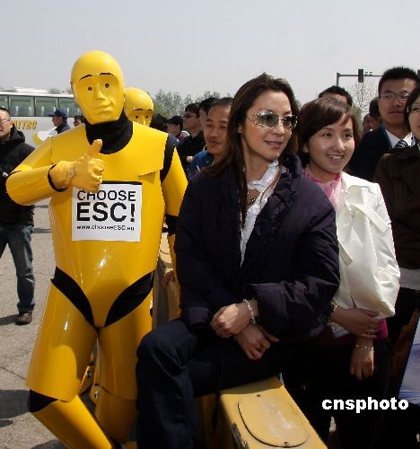 4月16日,楊紫瓊在北京交通部公路交通實(shí)驗(yàn)場(chǎng)出席“國(guó)家道路交通安全科技行動(dòng)計(jì)劃體驗(yàn)活動(dòng)暨國(guó)際汽聯(lián)汽車電子穩(wěn)定控制展示”活動(dòng),并擔(dān)任全球道路安全宣傳大使。本次活動(dòng)主題為“在中國(guó)推廣拯救生命的技術(shù)--電子穩(wěn)定控制(ESC)”。中新社發(fā) 張愛東 攝