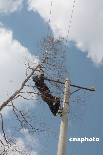 4月23日,當(dāng)牡丹江市電業(yè)搶修人員將三道林場內(nèi)最后一處電線桿上的刀閘閉合,7000多戶因暴雪導(dǎo)致斷電的人家,終于重新恢復(fù)正常的生產(chǎn)生活。 4月21日,黑龍江省牡丹江市出現(xiàn)雨夾雪天氣,其中牡丹江市三道林場的局部林區(qū)因當(dāng)?shù)亍靶夂颉庇绊懺馐鼙┭┮u擊,最深處的積雪厚度達(dá)到1米以上,林區(qū)內(nèi)的一些林木被大雪壓斷,通過林區(qū)內(nèi)的部分供電線路短路。從4月21日至4月23日,牡丹江市電業(yè)系統(tǒng)出動100多名搶修人員奮戰(zhàn)在40多公里的林區(qū)供電線路上,及時排除短路故障及線路險情。直到4月23日下午1點(diǎn)30分,各個停電村屯才陸續(xù)恢復(fù)供電。中新社發(fā) 莊文斌 攝