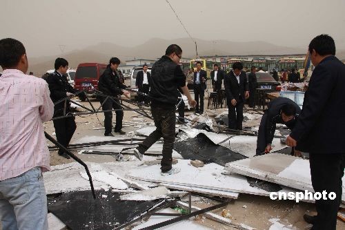 2009年4月24日,山西盂縣城鎮(zhèn)管理行政執(zhí)法局執(zhí)法大隊(duì)工作人員依法對(duì)陽(yáng)泉北站一尚未營(yíng)業(yè)的臨時(shí)違章建筑實(shí)施強(qiáng)制拆除。據(jù)盂縣城鎮(zhèn)管理行政執(zhí)法局負(fù)責(zé)人介紹,此次拆除違章建筑物行動(dòng)拉開該縣今年全面清理違章建筑物的序幕。中新社發(fā) 程瑜 攝