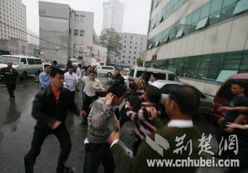 23日下午,湖北省婦幼保健醫(yī)院門前,發(fā)生一起流血事件:多名患者家屬在與醫(yī)院因醫(yī)療事故協(xié)商發(fā)生糾紛時(shí),醫(yī)院一伙保安竟用“甩鞭”和鋼管等將患者家屬打倒,造成多人受傷。