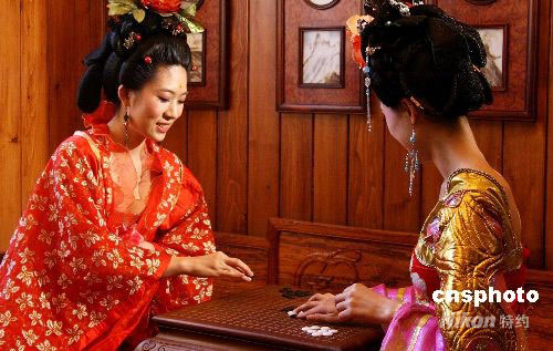 “國慶黃金周”之際,2008世界亞裔小姐大賽系列活動在北京進(jìn)行展示,賽事活動以中國文化和中國元素為表現(xiàn)主題,演繹“唐風(fēng)宋雅”女性風(fēng)采,通過展示中國盛唐時期的服飾美和造型美,從一個側(cè)面反映中國女性“浸于史、潤于知、融于德、成于韻”的獨特氣質(zhì)與內(nèi)涵,選手盛裝出境,在中國古典家具的映襯下,分別從琴、棋、書、畫四個方面完美演繹了一幅幅頗具文化氣息的傳統(tǒng)仕女生活圖。中新社發(fā) 錢興強 攝