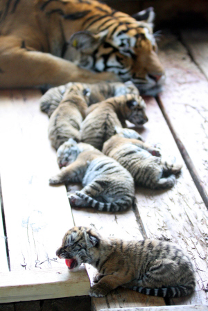 6月1日,黑龍江東北虎林園傳出喜訊,一只8歲東北虎一胎竟然產(chǎn)下了6只小虎崽,并且全部成活,這在世界上也十分罕見。預計虎寶寶將在3個月后與游客見面。