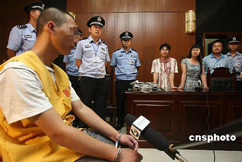 6月24日,為滿足女友的開銷殺死親生母親的朱某被押上法庭。當日,鄭州市中級人民法院開庭審理一起故意殺人案件,為滿足女友的開銷,朱某不斷盜竊家里的財物,而為了不讓父母發(fā)現(xiàn)自己的偷竊行為,年滿18歲的浙江青年朱某用匕首往母親身上連刺幾十刀,致使母親當場死亡,后被公安機關抓獲,公訴機關認為,被告人朱某故意傷害他人身體,并致人死亡,其行為應以故意殺人罪追究其刑事責任,法庭將擇日宣判。中新社發(fā) 王中舉 攝