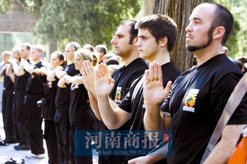 禪宗祖庭少林寺來“洋弟子”已經(jīng)不是什么稀罕事。早在1997年,美國少林拳法就已經(jīng)歸宗認(rèn)祖,并于2006年組織了河南歷史上最大規(guī)模的一次朝拜——500人歸山少林。