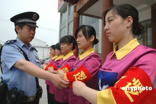 2009年7月9日,山東首支全運(yùn)會(huì)酒店女子巡邏隊(duì)在淄博周村北郊鎮(zhèn)成立。當(dāng)日是第十一屆全國(guó)運(yùn)動(dòng)會(huì)倒計(jì)時(shí)第99天,來(lái)自山東淄博周村區(qū)的10名酒店女子在北郊派出所民警的帶領(lǐng)下開(kāi)始“上崗”巡邏。據(jù)悉,全運(yùn)會(huì)期間,她們除擔(dān)負(fù)酒店周邊治安巡邏任務(wù)外,還負(fù)責(zé)救援受困游客和景區(qū)防火滅火等工作。中新社發(fā) 梁寶海 攝