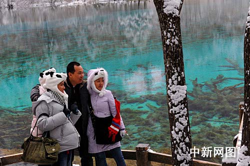 16日,一夜大雪給九寨溝的長(zhǎng)海、五彩池、天鵝海、五花海等都披上了冬裝,山下湛藍(lán)的海子,山腳繽紛的紅葉,山上多姿的霧松,讓游客飽覽無(wú)余。在海拔較高的長(zhǎng)海、箭竹海等景點(diǎn),堆起了近10厘米厚的雪,游人們興奮地打雪仗、堆雪人,和雪人合影留念。目前,九寨溝旅游進(jìn)入了淡季。從11月16日開(kāi)始執(zhí)行的淡季門(mén)票價(jià)(80元/人),也讓旅游者感到驚喜。蘇杰 攝