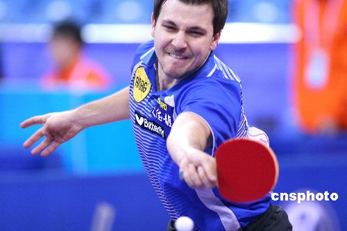 12月15日,2007年國際乒聯(lián)職業(yè)巡回賽總決賽男子單打1/4決賽在北京大學體育館進行。在東道主選手馬琳與德國悍將波爾的較量中,馬琳歷經六局苦戰(zhàn),最終4-2力克波爾。中新社發(fā) 富田 攝
