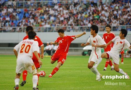 7月6日晚,中國國奧隊在沈陽奧體中心體育場與越南國家隊進行了一場友誼賽。最終國奧隊以3:2戰(zhàn)勝越南國家隊。中新社發(fā) zhangpeng0720 攝