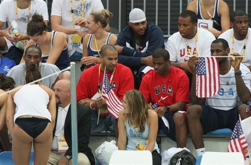 8月13日,科比,詹姆斯等美國男籃球星來到“水立方”觀看游泳比賽。