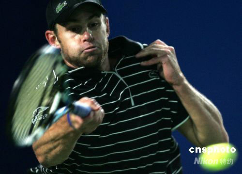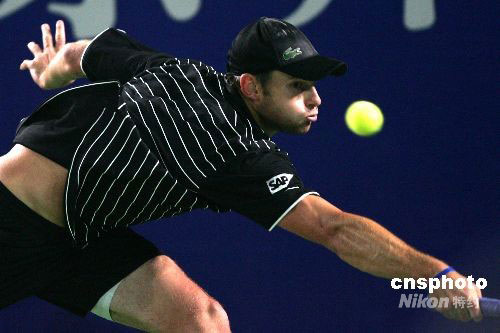 9月27日晚,2008年中國(guó)網(wǎng)球公開(kāi)賽進(jìn)入第六個(gè)比賽日的激烈角逐。在一場(chǎng)男單半決賽爭(zhēng)奪中,大賽2號(hào)種子美國(guó)帥哥羅迪克以6-2、6(4)-7、6-1戰(zhàn)勝德國(guó)選手法烏,將與以色列黑馬D.塞拉展開(kāi)冠軍爭(zhēng)奪。中新社發(fā) 富田 攝