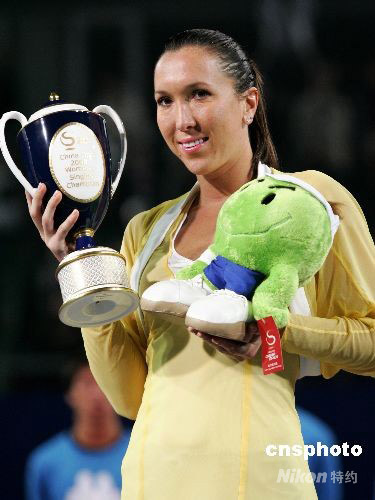 9月28日,在2008年中國網(wǎng)球公開賽女單冠亞軍爭奪戰(zhàn)中,世界排名第二的塞爾維亞美女揚(yáng)科維奇以6-3/6-2擊敗世界排名第7的俄紅粉好手庫茲涅佐娃,奪得女單冠軍。這是她連續(xù)5次參賽以來第一次奪得中網(wǎng)女單冠軍。中新社發(fā) 富田 攝