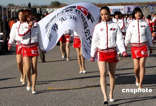 AGF亞洲方程式國際公開賽10月26日在北京京港賽車場舉行,來自中國內(nèi)地和香港的20名頂級方程式車手參加本站精彩紛呈的較量,眾多美女前來助陣。中新社發(fā) 趙振清 攝