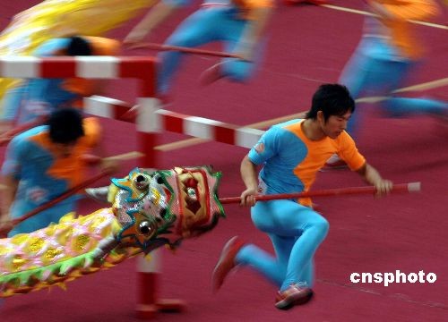 十月三十日,第六屆全國(guó)農(nóng)運(yùn)會(huì)舞龍舞獅比賽高潮迭起,給賽事舉辦地福建泉州石獅市觀眾帶來出神入化的美感。共有十三支來自天南地北的舞龍隊(duì),在“競(jìng)速舞龍”賽中使出渾身解數(shù)競(jìng)爭(zhēng)桂冠。中新社發(fā) 鄭祚聲 攝