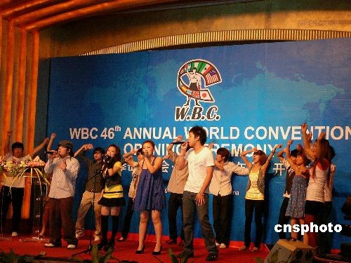 11月3日上午,2008世界拳擊理事會(huì)(WBC)第46屆年會(huì)在成都錦江賓館開幕,來自35個(gè)國家和地區(qū)的300多名拳擊界人士與會(huì)。年會(huì)除探討有關(guān)WBC的工作和未來規(guī)劃外,與會(huì)人士還將到都江堰地震災(zāi)區(qū)參加“向勇敢者致敬”的活動(dòng)。中新社發(fā) 楊杰 攝