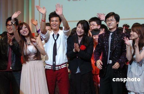 郭晶晶(右三)和歌手阿蘭(左二)與兩國(guó)青年共同高歌《明天會(huì)更好》。